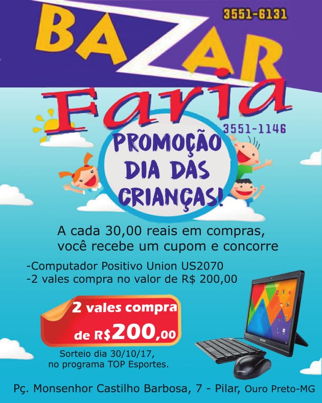 O Bazar Faria, localizado no pilar, esta com uma promoção especial para o mês das crianças: a cada R$ 30 reais em compras, o cliente recebe um cupom para a participação em um sorteio. Os prêmios oferecidos são um computador positivo union US2070 e dois vales de compra no valor de R$ 200 reais. O sorteio ocorre no dia 30/10, no programa TOP Esportes.