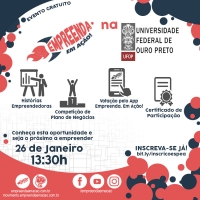 No dia 26 de janeiro, acontece o Empreenda. Em Ação! O evento é promovido pela Universidade Federal de Ouro Preto e será realizado no Centro de Artes e Convenções da UFOP.