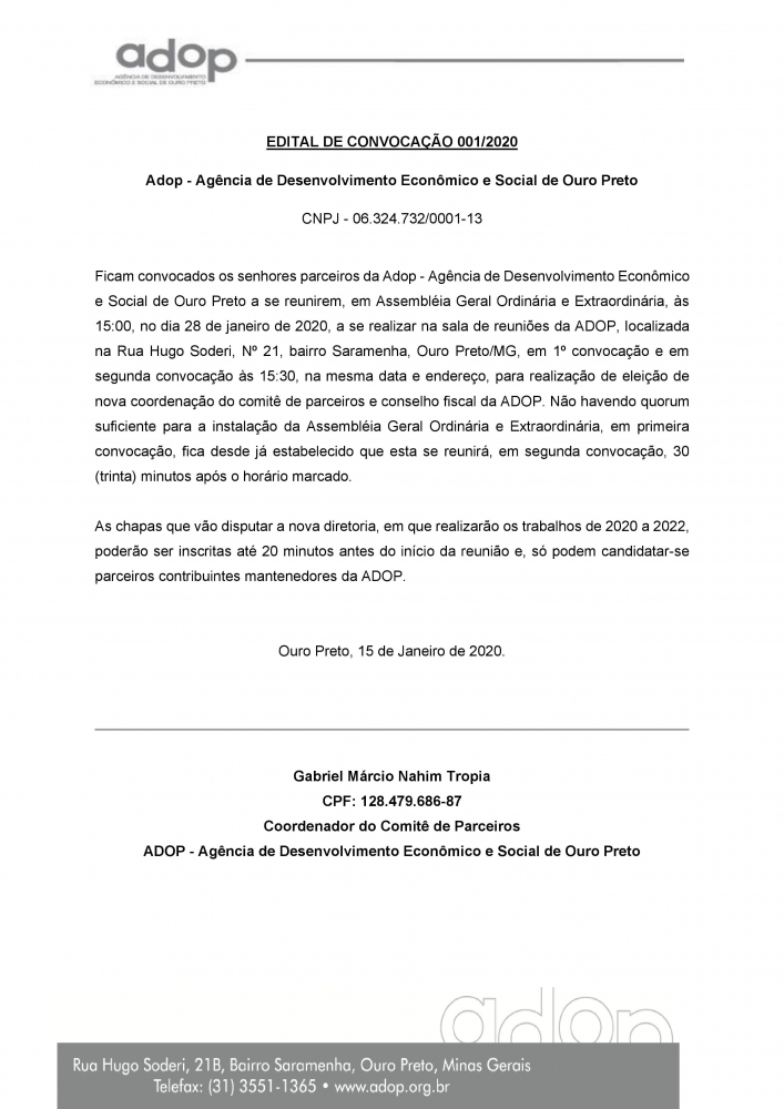 Convidamos os nossos parceiros, por intermédio deste edital, a comparecerem em nossa reunião que acontecerá no dia 28/01/2019 em nossa agência. Contamos com a sua participação.