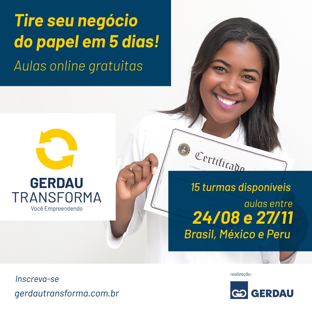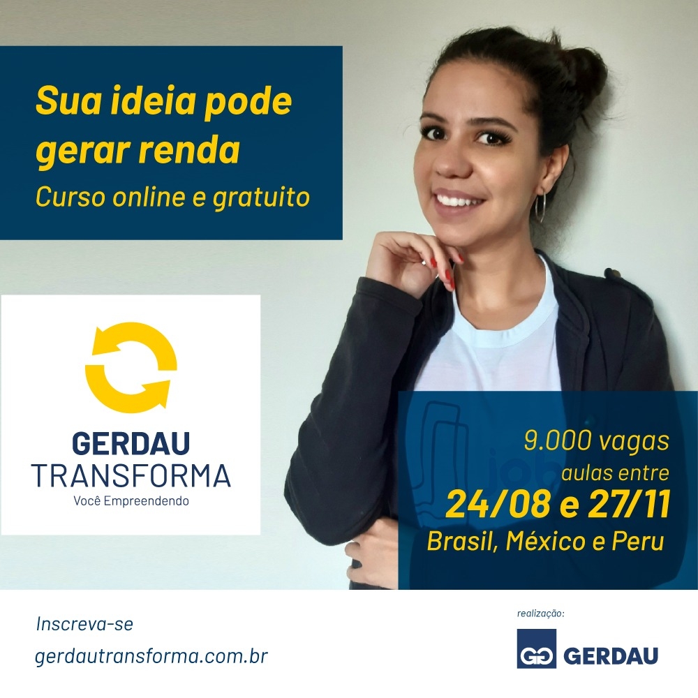 O programa Gerdau Transforma - Você Empreendendo, voltado para a inserção de jovens no mercado de trabalho por meio do empreendedorismo, é uma realização da empresa Gerdau. O intuito é proporcionar o empoderamento e o fortalecimento do indivíduo, tanto no âmbito pessoal quanto profissional. Assim, torná-lo ciente do seu potencial empreendedor, enxergando-se capaz de alcançar as metas por ele ambicionadas.