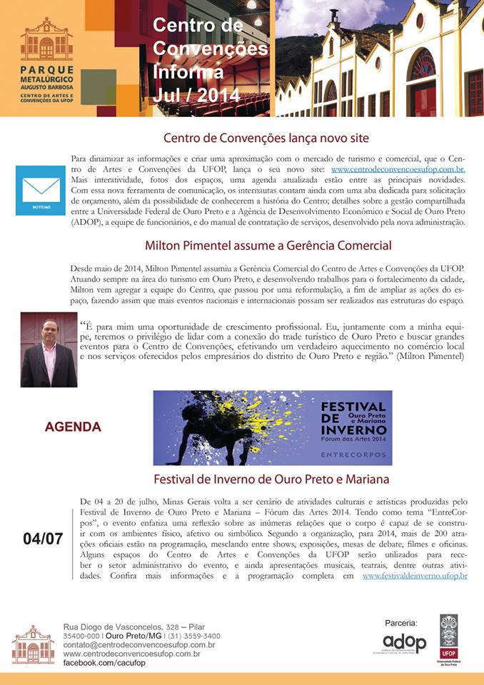 Festival de Inverno é a grande atração do mês de Julho no Centro de Artes e Convenções da UFOP