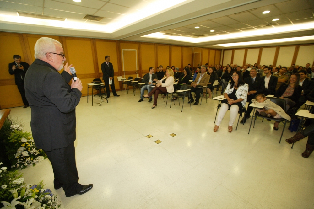 Logo após a exibição, o Presidente do Comitê de Parceiros da ADOP Gabriel Tropia, realizou o seu discurso oficial, onde salientou que o sonho de se construir uma Agência em Ouro Preto, virou realidade graças ao empenho de várias e importantes parcerias, que promoveram a união e ao mesmo tempo o fortalecimento de diversas instituições em Ouro Preto.