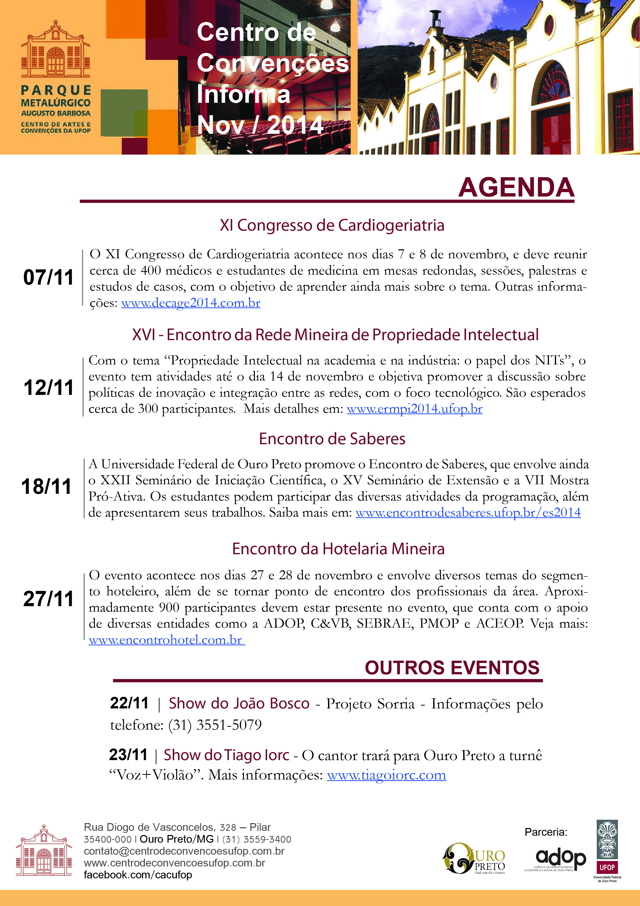 Agenda de novembro do Centro de Convenções