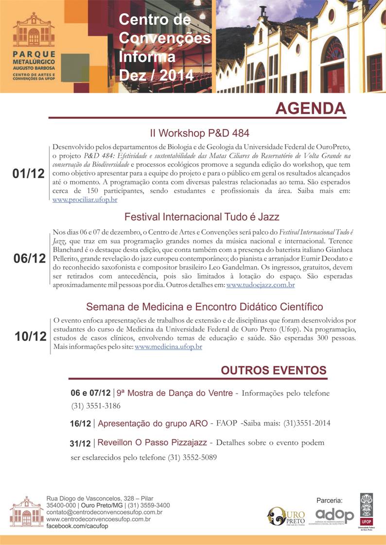 Centro de Convenções da UFOP divulga lista de eventos de Dezembro