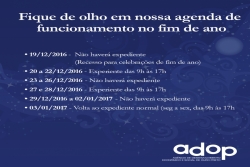 Fique atento ao expediente da ADOP no Carnaval